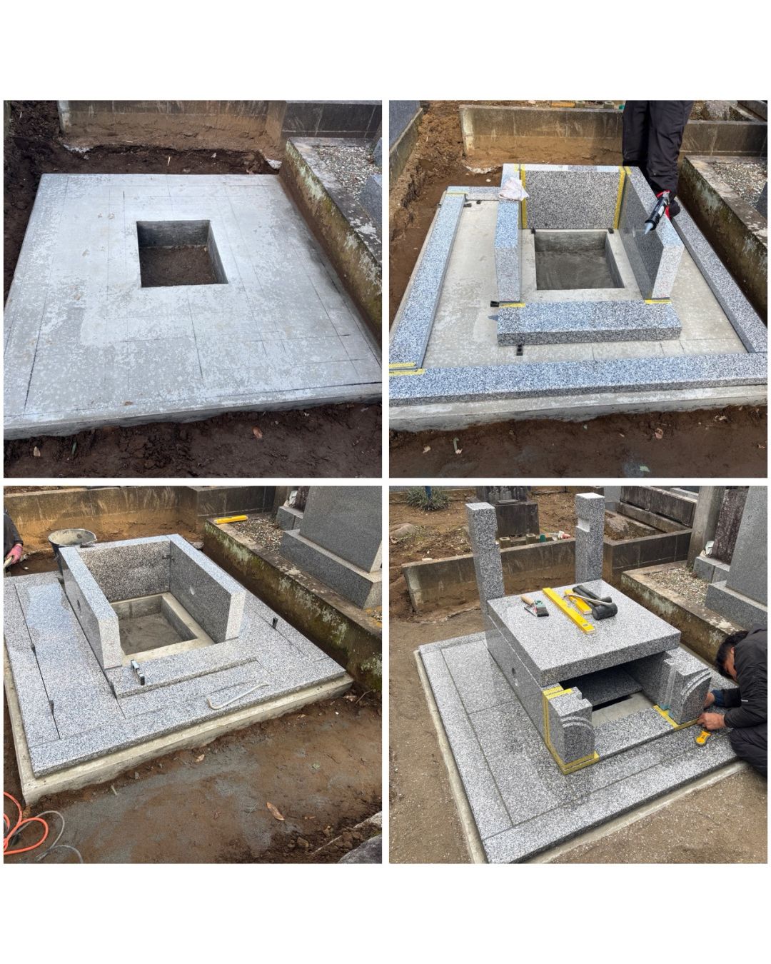 我孫子市寺院墓地お墓じまい、リフォーム工事 ご親戚で墓所が並んでおり右墓所をお… -
