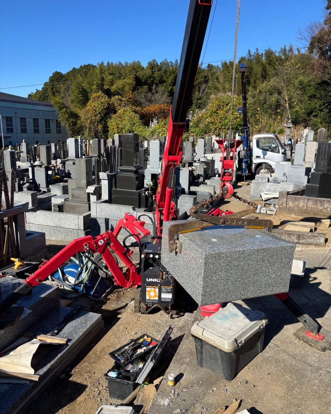我孫子市の共同墓地でお墓の囲いのリフォームです。石塔はそのまま使用。平石は700kくらいありましたがなんとか移動させることができました!本日は、基礎工事の準備です! ブログ 施工実績(解体、引取) 施工実績(我孫子市共同墓地) 関連記事 【お墓じまい・墓石リフォームのご報告】 2025-12-15 お墓の文字は何を彫るのが正解?「〇〇家」だけじゃない、墓石に刻む言葉の種類と人気の漢字ランキング 2025-12-08 我孫子市寺院墓地でのお墓じまい、リフォーム工事を行いました。 2025-11-25 「墓じまい」が増えている背景とは 2025-11-18 既存階段の交換工事を行いました。 2025-11-02 墓石に刻む文字の選び方と意味|後悔しないためのポイントを解説 2025-10-18 印西市共同墓地でお墓じまい 2025-10-06 竹内神社例大祭 2025-09-28